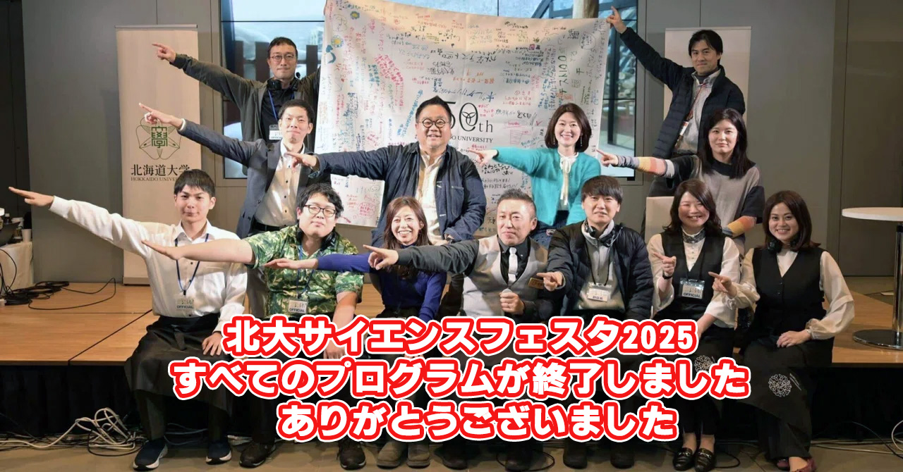 北海道大学の大学院生が中心となり自身の研究と社会をつなげる成果を発表するイベントに、小中学生から科学を楽しめる展示や体験、考えるを複合した総合イベントになりました。 本学が掲げる「未来社会の開拓者」とともに、学びの祭典をお楽しみください!